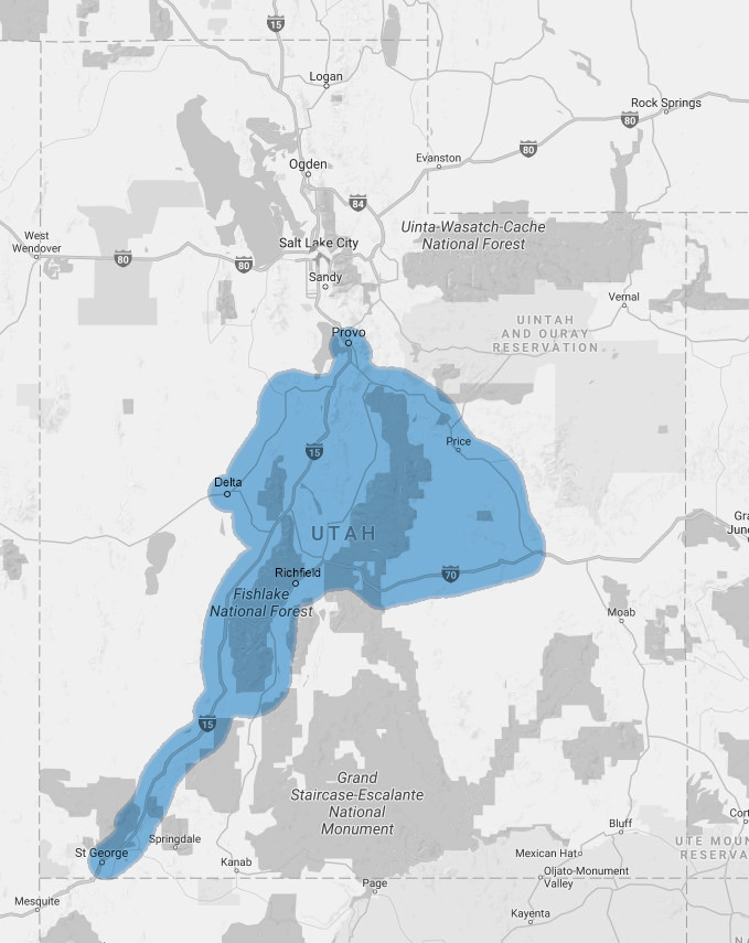 We service a great portion of Utah. If you don't see your location on the map feel free to call us to inquire about our service area.